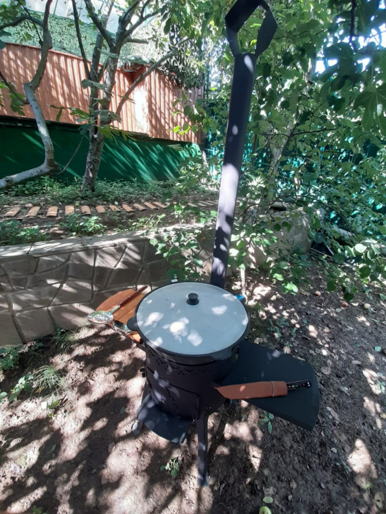 печь на 12 литров с двумя съемными столикамиказан чугунный на 12 литровшумовка малая – 47 смполовник малый – 47 смнож Пчак
