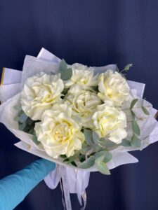 Букет из кустовых роз Miss bombastic и эвкалипта